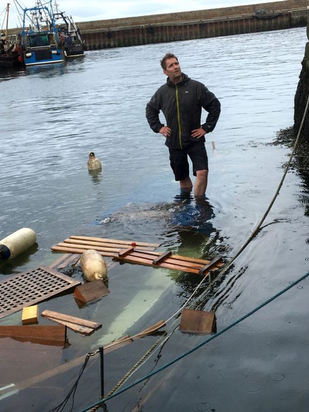Alors que le grand jour est arrivé, Richard et ses amis se sont retrouvés sur le port de Forres, en Angleterre. Ils ont treuillé le bateau jusqu’à quai. C’est une réussite ! Richard monte sur son bateau et prend la pose fièrement. Mais après quelques minutes, il se rend compte que le bateau commence à couler. En 10 minutes, l’appareil est complètement rempli d’eau. Il n’est pas étanche et est trop lourd, le Sea Wraith ne flotte pas ! Des années de travail s’enfoncent dans la Mer du nord. Richard tente de rester positif et pense à tout ce que cela a lui a appris. Il reste dorénavant des heures, assis dans sa Land Rover à attendre que la marée descende pour aller vider l’eau du bateau. Il compte revendre l’épave histoire de récupérer un peu d’argent.