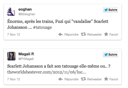 Incompréhension générale sur la toile lorsque Scarlett a dévoilé son tout nouveau tatouage au grand jour. C’est l’ancien graffeur Fuzi Uvtpk reconverti en tatoueur qui s’est occupé de l’actrice alors qu’elle était de passage à Paris. Un petit fer à cheval entouré d’un Lucky You…Un choix assez surprenant et contestable que les twittos ont clairement détesté.