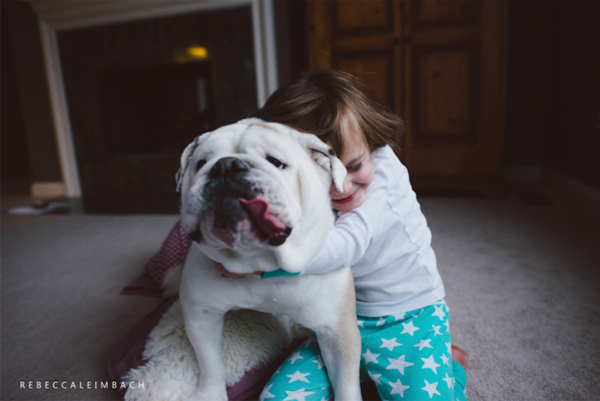 Rebecca Leimbach est mère d’une petite fille, Harper, et, depuis sa naissance elle la photographie en compagnie de son bouledogue anglais. Dans ces photos, nous pouvons distinguer une complicité étonnante, Harper joue avec son chien Lola. Ils sont inséparables ! Elle le déguise, prend son bain, lui parle, se confie. Les deux petits entretiennent une réelle amitié qui est magnifique à voir en photos !