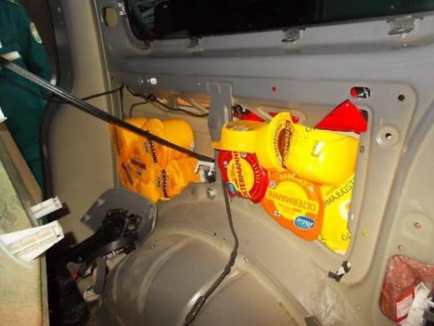 Le contrebandier est apparu nerveux au moment de traverser la frontière, au poste-frontière de Yle Uutiset, entre la Finlande et la Russie. Les douaniers ont compris qu’il cachait quelque chose et ont arrêté le véhicule, un minivan Volkswagen Caravelle. En fouillant bien, les autorités ont trouvé des cachettes planquées derrière des doubles portes ou des cloisons. Le butin est incroyable. Soixante-sept meules de fromage avaient été soigneusement attachées. L’ensemble des meules pèse à peu près 100 kilos. Il s’agissait principalement d’Oltermanni, un fromage finlandais commercialisé par Valio.