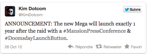 Aujourd’hui, Kim Dotcom annonce sur Twitter la date de l’ouverture de son nouveau bébé Méga ! Et attention, tenez vous bien : Megaupload a fermé le 19 Janvier 2012…et bien son successeur ouvrira..le 19 Janvier 2013 ! Pied de nez au FBI qui a fermé son site, pied de nez à ses détracteurs et à tous ceux qui ont voulu lui mettre des bâtons dans les roues ! Kim semble bien avoir gagné une bataille juridique de poids et frappe très fort en ouvrant ce nouveau site à la date anniversaire de » la mort « de Megaupload !
