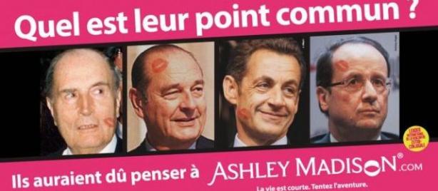 Nos hommes politiques apprécieront-ils une telle insinuation sur leur vie privée ? Pas sûr, mais beau coup de pub pour Ashley Madison qui ouvre très prochainement son site en France.