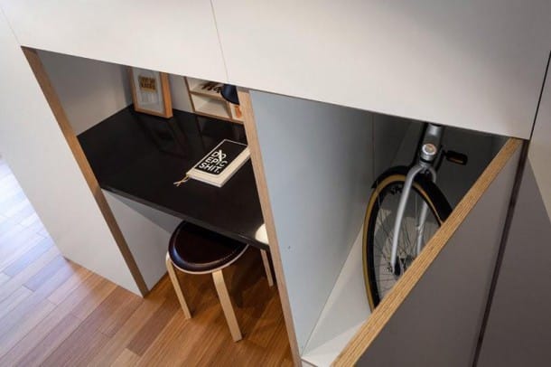 Le point fort de son projet, c’est le gain d’espace. Le loft chambre d’hôtel, qu’ils ont baptisé « Zoku », est, comme son nom l’indique, d’inspiration japonaise. Au Japon, dans les maisons les plus modestes, tout est rassemblé dans le plus de pièces possibles.