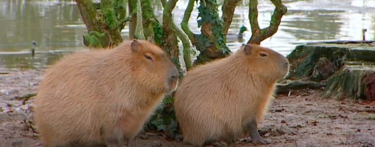Le Capybara est un animal calme vivant en Amérique du sud. Paisible, il vit en petit groupe dans les eaux douces du continent. C’est le plus gros rongeur qui vive actuellement sur la planète.