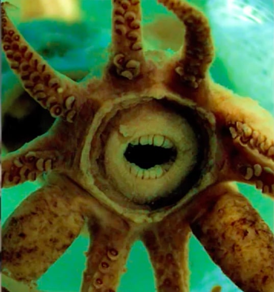 Ce calmar n’a rien d’incroyable au premier coup d’oeil, en revanche, en regardant de plus près, ses dents sont assez particulières. Il possède un ensemble de lèvres semblable à une dentition humaine.