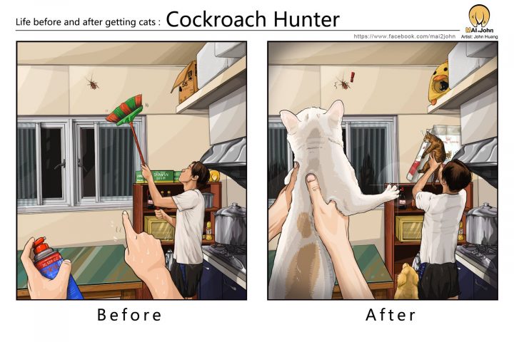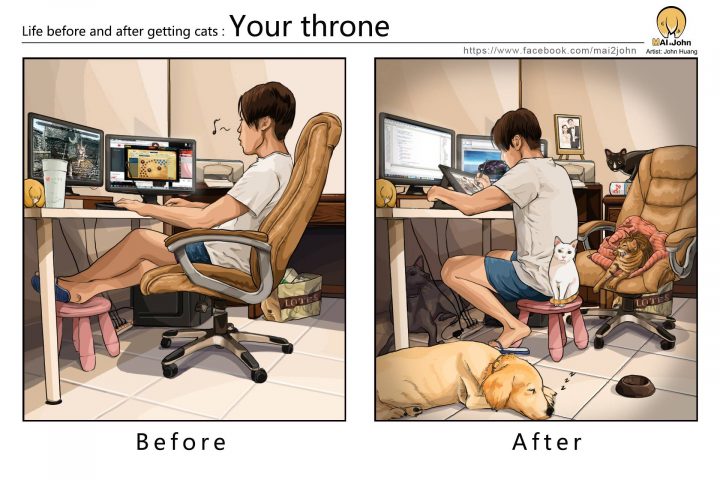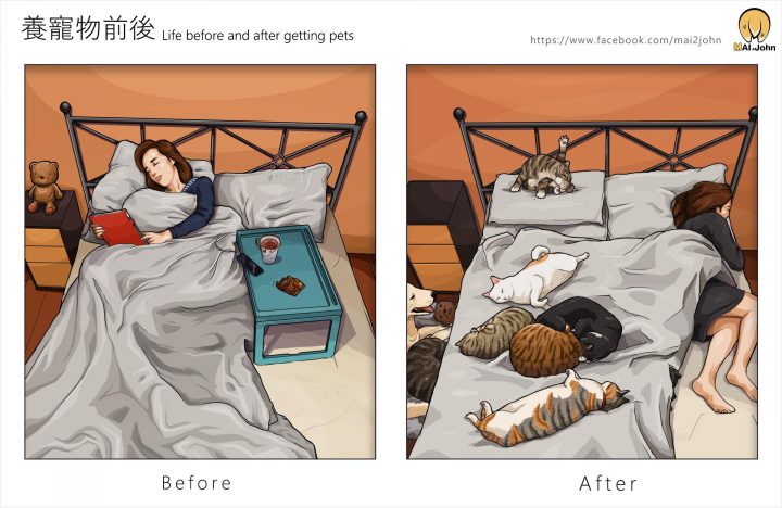 Cet artiste illustre avec beaucoup d’humour le quotidien avec et sans animaux de compagnie !