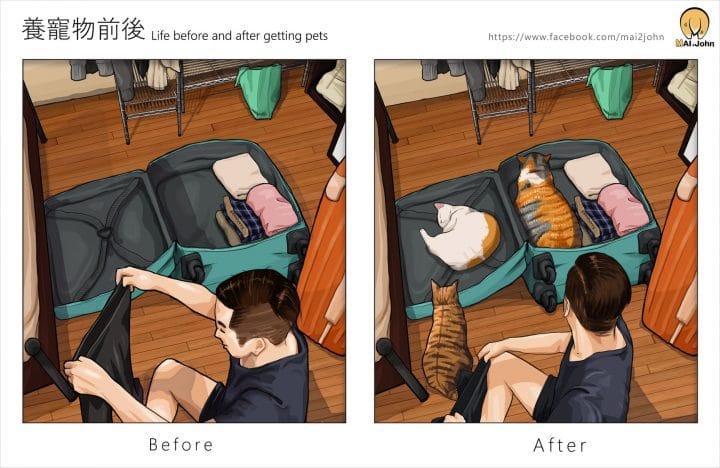 Cet artiste illustre avec beaucoup d’humour le quotidien avec et sans animaux de compagnie !