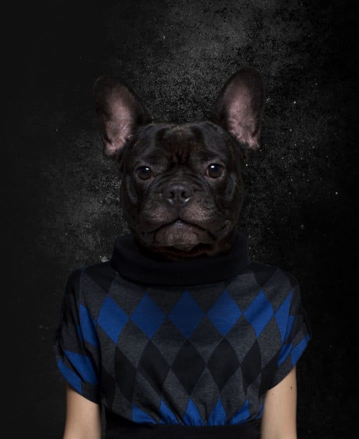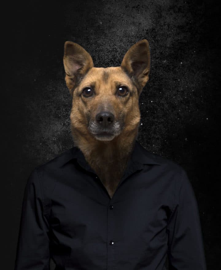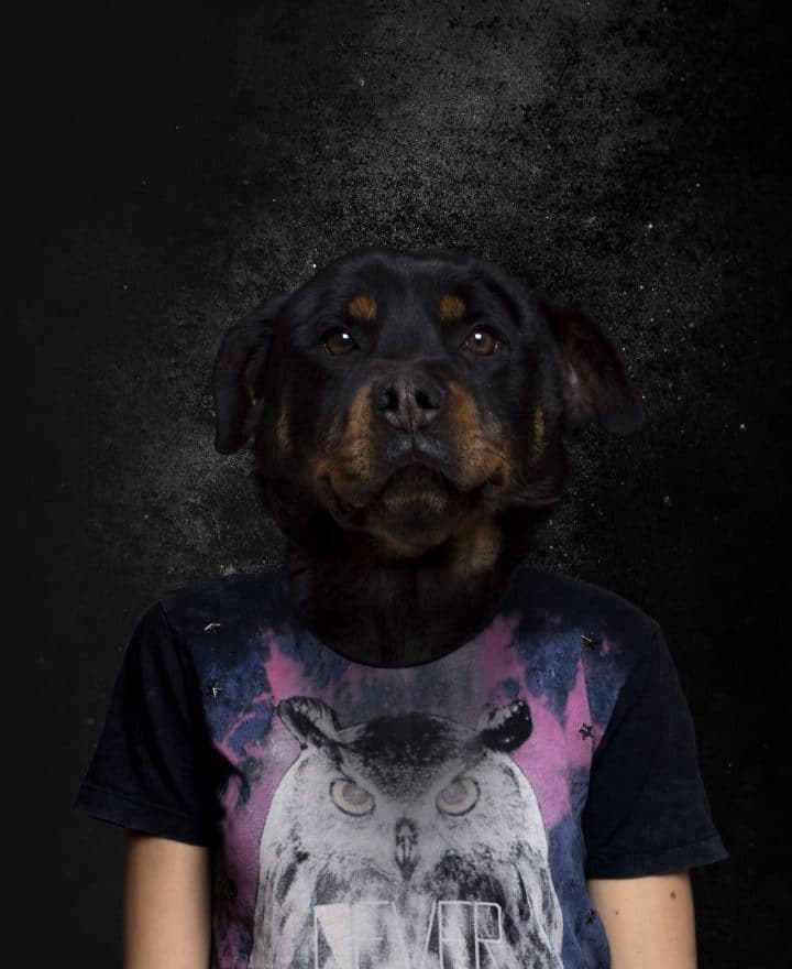 Cet artiste réalise des photos montage avec la tête d’un chien sur le corps de son propriétaire, bluffant !