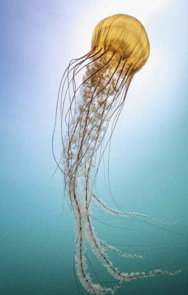 Les piqûres de cette méduse sont douloureuses. Celle-ci possède d’ailleurs un gabarit impressionnant. 1 mètre de diamètre et ses tentacules peuvent atteindre les 4 mètres de long.