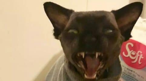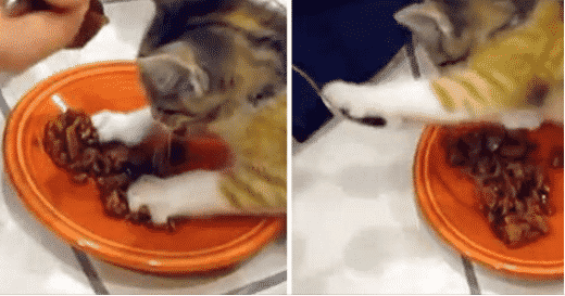 Au moment du repas, ce petit chaton en apparence inoffensif se transforme en un véritable lion féroce ! (vidéo)