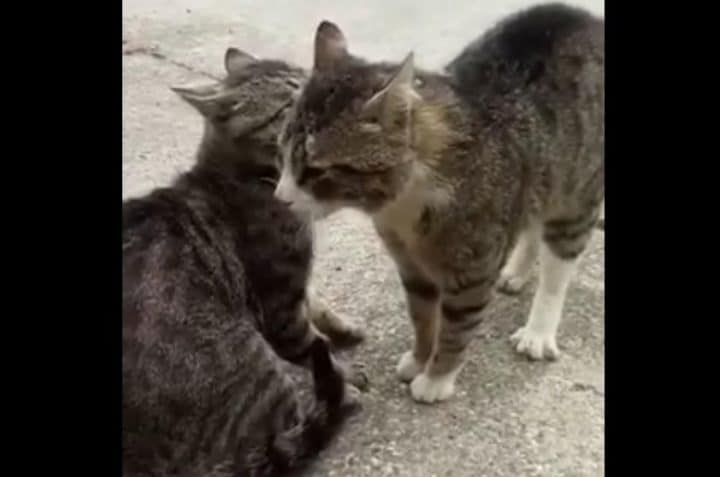 Les bagarres de chats sont généralement plus bruyantes que violentes. Ici, on peut voir deux chats qui se trouvent dans une rue en Turquie et qui sont tout aussi violents que bruyants. L’homme qui filme la scène tente par tous les moyens de les séparer, en vain. Il crie, les somme d’arrêter leur tintamarre et tente même de les pousser du pied. Une bagarre de félins qui dégénère peut malheureusement tourner au drame. Mieux vaut donc les « bousculer » un bon coup plutôt que de les laisser s’entre-tuer. Sinon, une grosse gamelle d’eau est tout aussi efficace (voire plus) et a l’avantage de surprendre et non de blesser. Aux grands maux les grands remèdes.