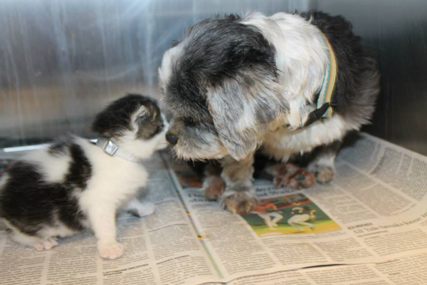 Après l’émouvante histoire de cette maman chat qui avait recueilli un bébé écureuil, on vous présente cette courageuse petite Shih-Tzu qui a risqué sa vie pour celle de ce petit chaton.