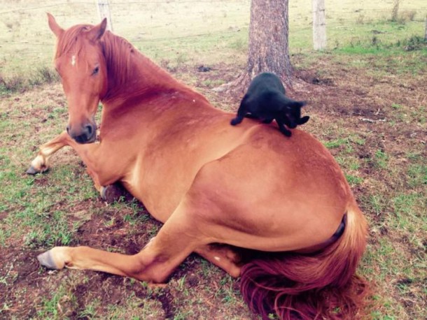 Les animaux ont bien compris une chose…l’espèce n’a aucune importance ! La taille non plus d’ailleurs… Entre Champy (le cheval) et Morris (le chat), c’est une grande histoire d’amour qui a démarré au premier regard comme le confirme leur propriétaire, Jennifer Boyle.