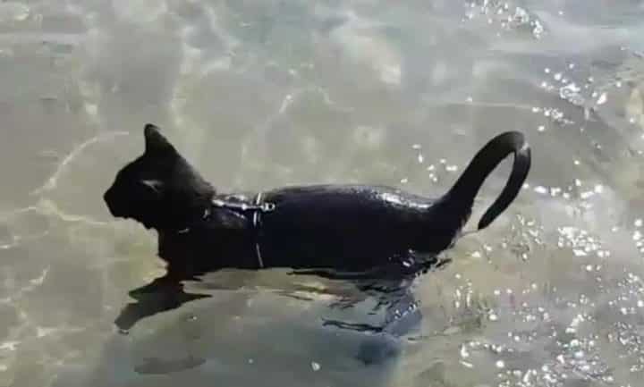 Ce petit chat nage dans la mer comme si c’était tout à fait normal (vidéo)