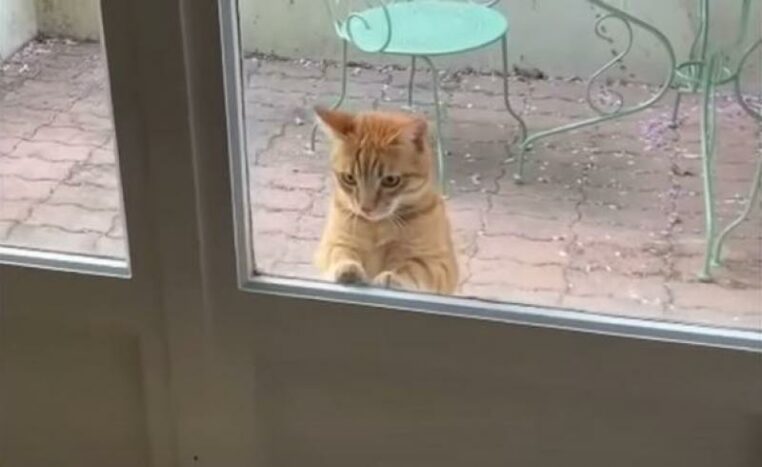 Un petit chat rentre tranquillement dans l’appartement de ce couple