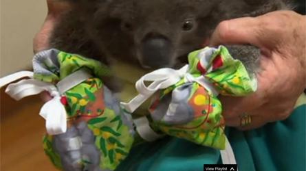 Cherche mitaines pour soigner les pattes brûlées des koalas