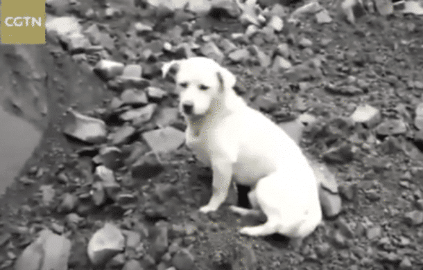 Un chien triste semble attendre son maître après l’éboulement en Chine, l’image qui a touché le monde entier…