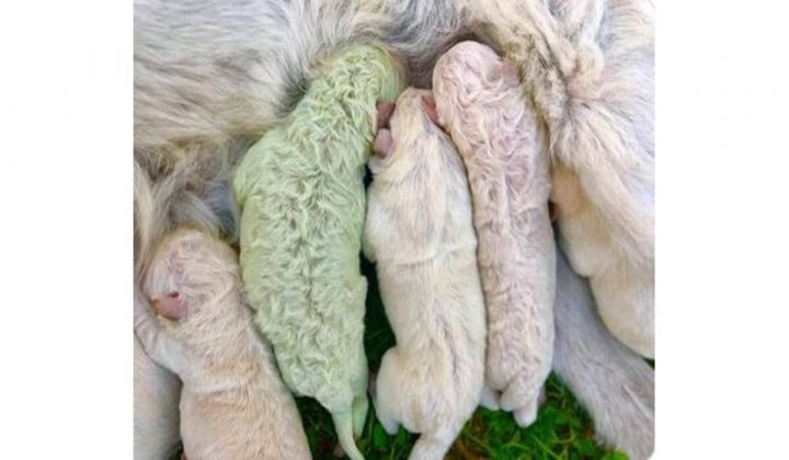 En Sardaigne (Italie), une chienne a donné naissance à cinq petit labradors le 9 octobre dernier. Seulement, l’un des chiots ne ressemble pas à ses frères et soeurs. Alors que les quatre bébés sont de couleur beige comme leur maman, l’un d’eux est né tout vert. Les propriétaires de l’animal n’en ont pas cru leurs yeux. « On aurait dit un chien extraterrestre » , ont confié les gérants de l’exploitation agricole à La Nuova Sardegna.