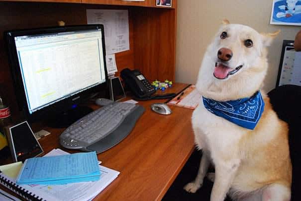 Sauf que l’argent ne rentre pas tout seul et il faut bien aller au charbon ! Certaines personnes ont la chance de pouvoir emmener leur animal de compagnie sur leur lieu de travail. De récentes études montrent d’ailleurs que cela serait excellent pour la productivité…une idée à laquelle beaucoup de patrons ne se font pas encore mais bon… Une choses est sûre c’est que lorsqu’ils sont au boulot avec nous, nos amis à 4 pattes sont les stars ! Cela n’a d’ailleurs pas l’air de leur déplaire….