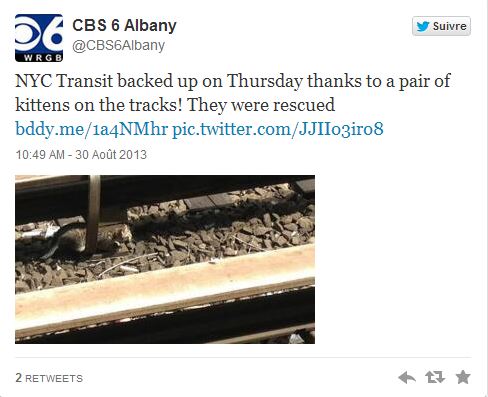 Les deux petits chats ont provoqué la panique au sein de la Metropolitan Transportation Authority (l’équivalent de la RATP). Ces derniers ont échappé à la surveillance de leur maîtresse et se sont mis à courir pendant plus d’une heure tout près d’une ligne à haute tension. Ils ont ainsi causé l’arrêt de l’électricité sur plusieurs stations perturbant le fonctionnement du métro New-Yorkais (notamment la ligne Q et la ligne B à Brooklyn). Les conducteurs des trains ont donc dû rouler avec plus de précaution que d’habitude.