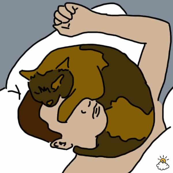 Si votre chat aime s’allonger sur votre ventre et poser sa tête près de la vôtre, cela signifie que vous êtes très proches l’un de l’autre et partagez une relation fusionnelle.