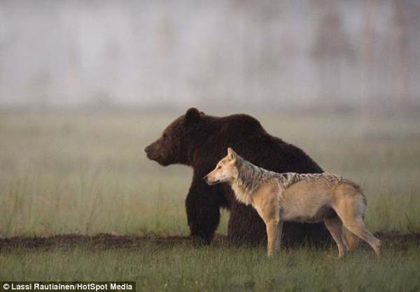 En Finlande, en plein cÅ“ur des montagnes, une histoire rarissime est née… Lassi Rautiainen, photographe, est devenu le spectateur de cette amitié exceptionnelle entre 2 espèces de prédateurs qui habituellement sont loin de partager du temps ensemble! La curiosité nous amène à nous poser des questions sur les conditions de leur rencontre… Ont ils grandi ensemble avec la nécessité de survivre ? Ont ils chassé ensemble, se sont ils entraidés ? Étaient-ils ennemis avant de devenir compères ? Le loup se prendrait t’il pour un ours et aurait été accepté parmi eux comme tel ? La réponse restera pour cette belle histoire un mystère de la nature…