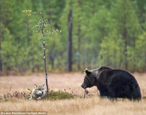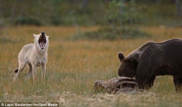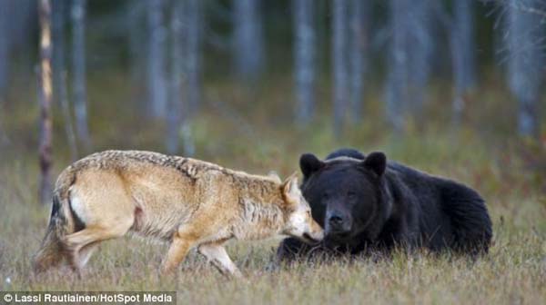 [Photos] Une histoire incroyable entre un loup et un ours !