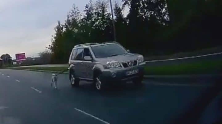 Cette vidéo est très courte, mais l’extrait suffit à choquer les internautes qui l’ont vue sur Facebook. On peut y voir un 4×4 gris qui roule sur une route près de Manchester, alors qu’un chien en laisse suit le véhicule de près.