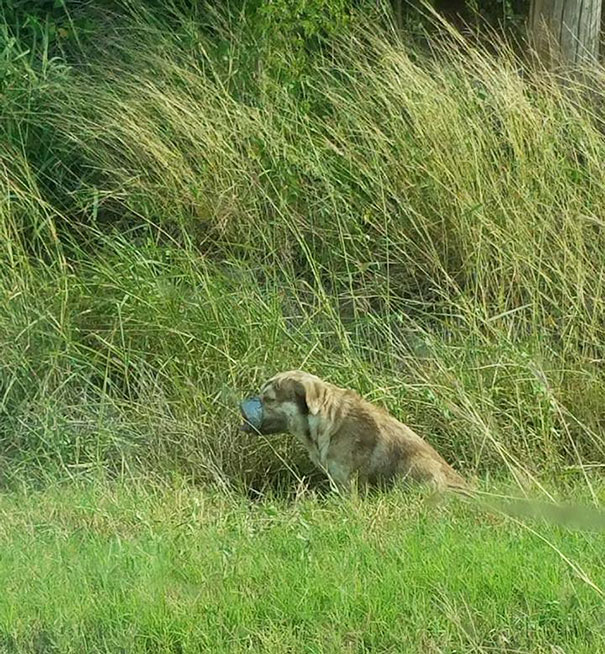 C’était supposé être une journée comme les autres pour Carlos Carillo et ses collègues. Les plombiers étaient alors en route pour aller travailler lorsqu’ils aperçurent quelque chose d’étrange sur le bas côté. Ils roulaient alors sur une petite route de campagne et ont du s’arrêter pour aller y voir de plus près. Il s’agissait d’un chien, qui venait manifestement d’être une triste victime de plus de la cruauté humaine. Au départ, Carlos et ses collègues n’ont même pas réalisé qu’il s’agissait d’un chien… L’animal était bâillonné avec de gros scotch. Il en avait autour du museau, pour ne pas aboyer. Et ses pattes avant, tout comme ses pattes arrières, avaient été liées ensemble, pour qu’il ne puisse plus bouger. Il s’agissait d’un acte tout à fait volontaire. Ce pauvre chien laissé pour mort dans un fossé, n’avait aucune chance de s’en sortir seul.