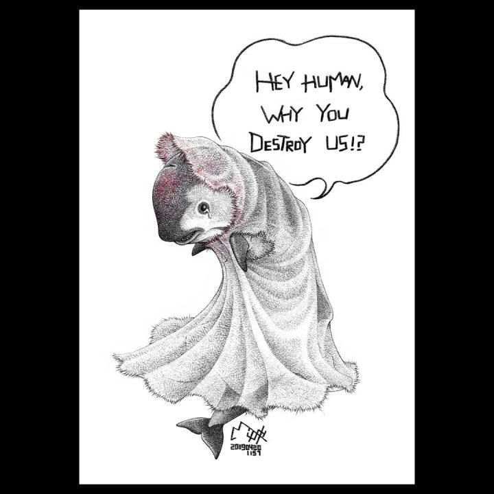 Traduction : hey humain, pourquoi tu nous détruis ?