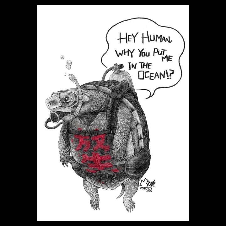Traduction : hey humain, pourquoi tu me remets dans l’océan ?