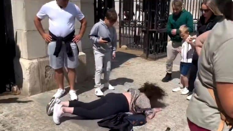La vidéo d’une femme projetée au sol par un cheval de la garde royale fait le tour de la Toile ! (vidéo)