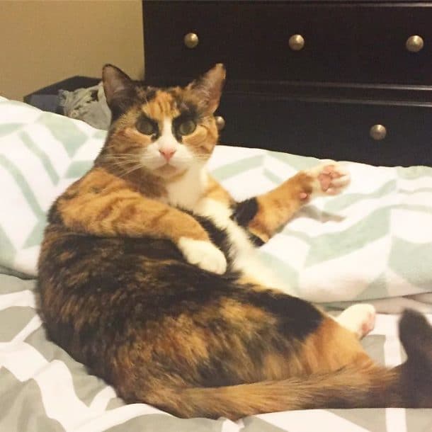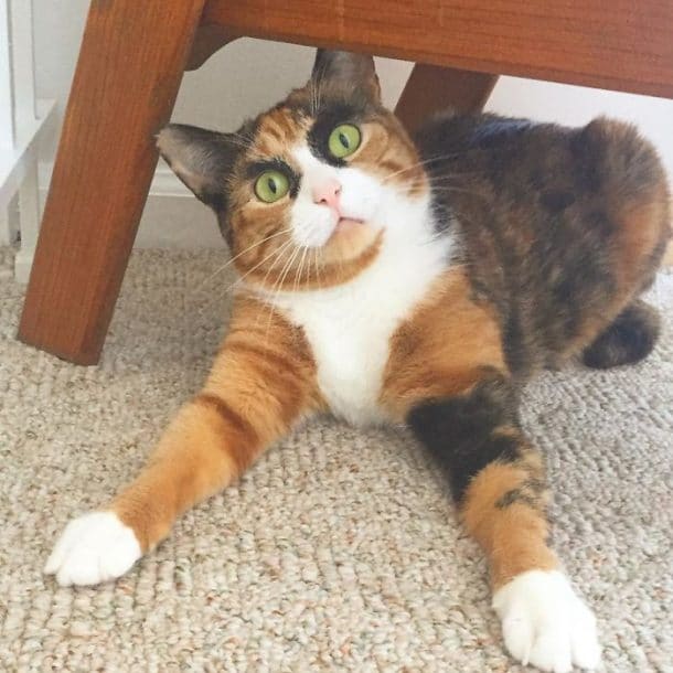 On le sait, tous, en 2016, la tendance est aux sourcils fournis. Ce n’est pas Cara Delevingne ou Eugene Levy qui diront le contraire. Frida Kahlo était déjà dans l’air du temps sans même le savoir. Quoi que, elle c’était plutôt un mono-sourcil… Du coup, on avait envie de vous présenter Lilly le chat aux sourcils fournis. Cette jolie minette calico possède une petite particularité physique. En effet, les poils près de ses yeux sont noirs. Ils entourent bien ses yeux, formant plus ou moins des espèces de sourcils. Enfin, on peut imaginer que ce sont des sourcils, et ça lui donne vraiment un drôle d’air.