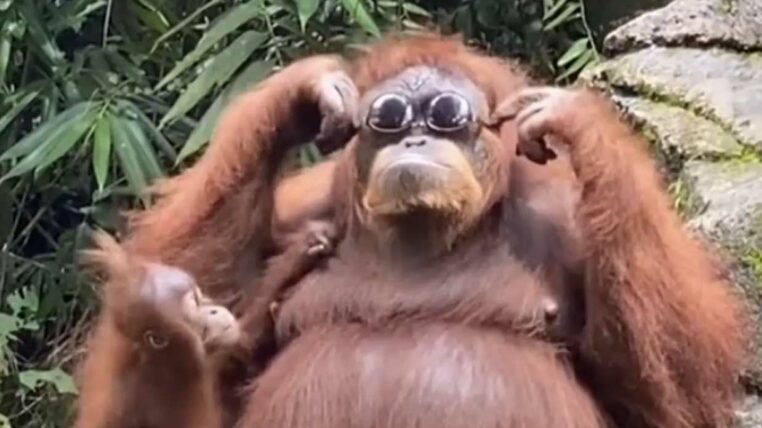 La vidéo tourne depuis quelques jours sur les réseaux sociaux et est devenue virale. Regardez ci-dessous cette vidéo d’un orang-outan à l’attitude très mignonne. Le primate a voulu essayer une paire de lunettes tombée dans son enclos, tout en gardant son petit sur les genoux.