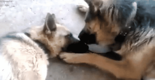 Cette maman chien a donné naissance à quatre beaux bébés et cette aventure l’a épuisée… L’accouchement + l’allaitement de ces 4 petits morfals, ce n’est pas de tout repose… Pendant qu’elle nourrit sa progéniture, papa chien va se montrer très tendre envers elle en lui léchant affectueusement le visage… Quelle jolie famille !