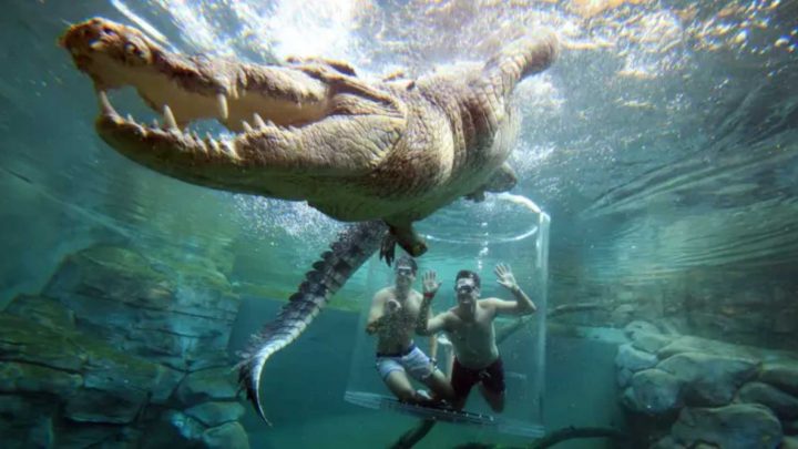 À Crocosaurus Cove, un parc dédié aux crocodiles, situé à Darwin, dans le nord de l’Australie, vous pourrez vivre l’expérience la plus terrifiante qui existe au monde avec des gros reptiles aux dents aiguisées. Dans ce parc, les visiteurs peuvent assister à des shows avec des crocodiles, comme lorsque les soigneurs les nourrissent. Mais à présent la star des attractions est la Cage de la mort. Pendant 15 minutes, on vous propose le grand frisson, en étant immergé dans le bassin des crocodiles marins.