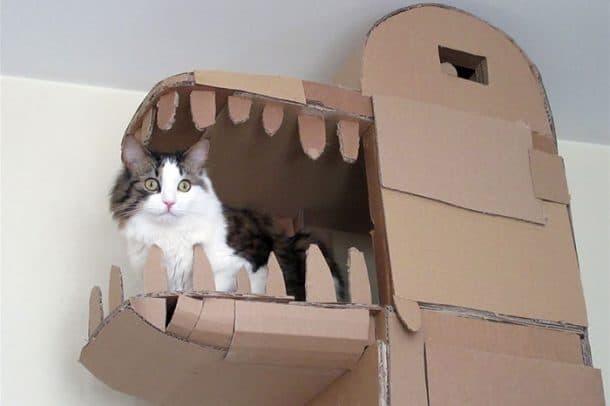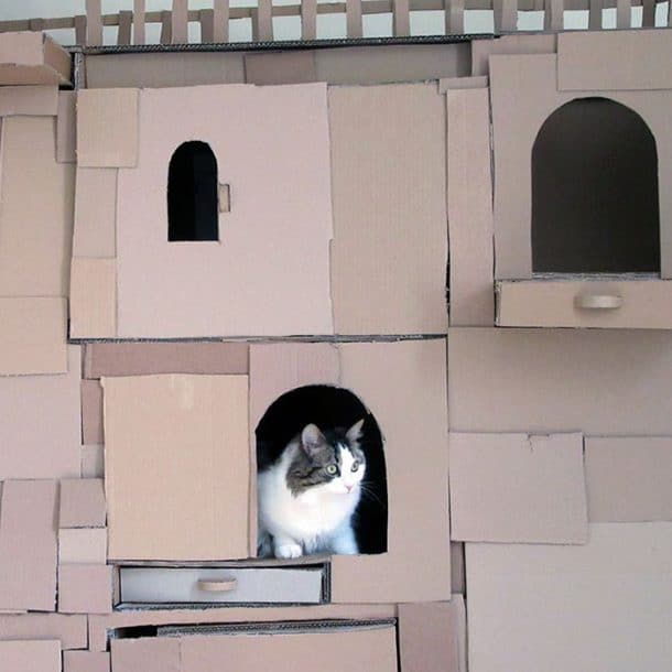 Et il n’en fallait pas plus à cet amoureux des chats pour se lancer dans la réalisation de structures cartonnées XXL et autres jouets pour chat. Sur son site web prefabcat, il expose toutes ses créations destinées à son chat, Denni. Vous pouvez même le suivre sur son compte Instagram, complètement dédié à ses créations pour chat. Vous verrez qu’il n’y a que peu de posts pour l’instant, mais ça ne devrait pas tarder à se remplir. Par contre, le petit hic c’est que ça prend un peu de place dans la maison ! Mais Sam a pensé à tout, et il fabrique même de plus petites structures, toutes aussi sympa.