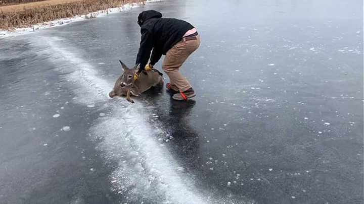 Il sauve une biche coincée au milieu d’un lac gelé