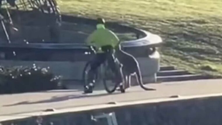Ils sauvent un kangourou au milieu d’un lac et l’animal attaque un cycliste