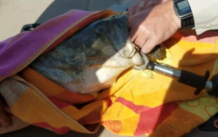 Une famille sauve un silure qui avait une tortue coincée dans la bouche (vidéo)