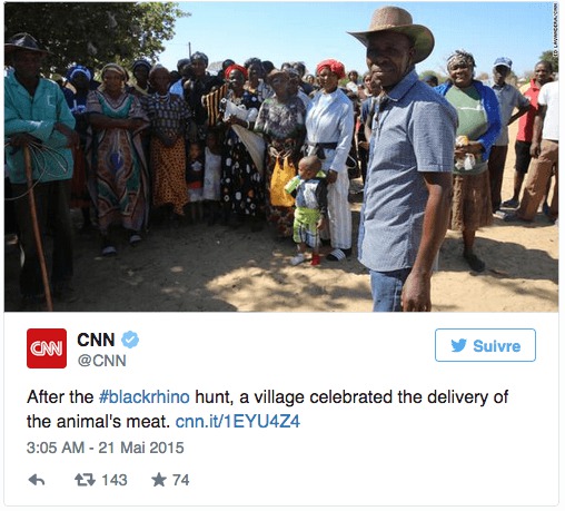 Nous on trouve déjà très malsain de payer (et qui plus est une telle somme…) pur tuer un animal ! Si ce brave homme est si dévoué à la cause des rhinocéros noirs, pourquoi n’a t-il pas tout simplement fait un don ?