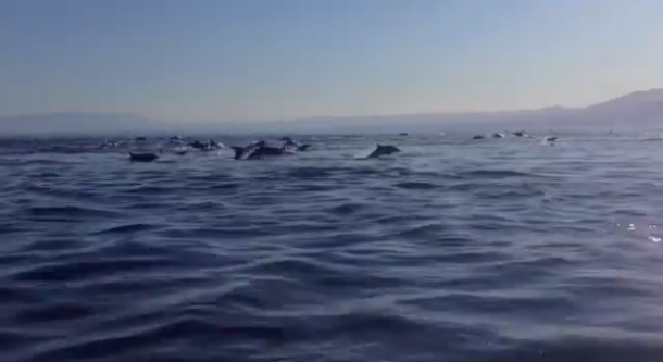Cette femme a vécu ce moment d’exception! Alors qu’elle faisait du wakeboard sur une eau calme, elle a vu débarquer sous ses pieds des dauphins! Mais pas 2 ou 3 ! Il y avait des dizaines et des dizaines de dauphins auprès d’elle! On se serait cru dans le Grand Bleu de Luc Besson. C’est certain que cette femme va revenir de son petit périple en mer des étoiles plein les yeux!