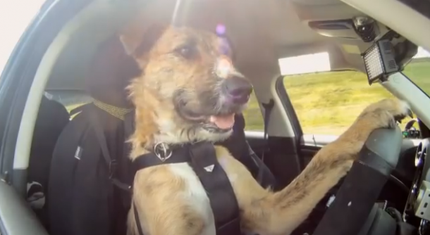 Il s’appelle Porter et c’est un véritable prodige de la conduite! Ceinture attachée, pattes sur les pédales et sur le volant et c’est parti pour un tour! Forcément la question vient d’elle même, à quand le permis pour chiens?
