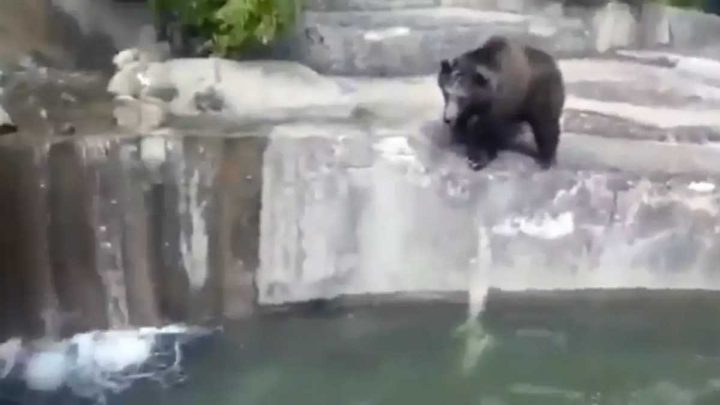 Un homme de 23 ans visitait le zoo de Varsovie, en Pologne, et il était en état d’ébriété. En plein délire, il s’est dit qu’il pourrait rendre visite à un ours en sautant par-dessus la barrière. La scène a été filmée par un autre visiteur. Dans l’enclos, une femelle l’a repéré et s’est mise à le suivre. L’homme a ensuite sauté dans l’eau, et l’ours l’a rejoint. Pendant près d’une minute, l’ours et l’homme saoul se sont empoignés. Heureusement pour lui, les pompiers sont intervenus et il a pu sortir de l’enclos sain et sauf. Souffrant seulement de quelques égratignures, il a été emmené à l’hôpital pour vérifier son état de santé.