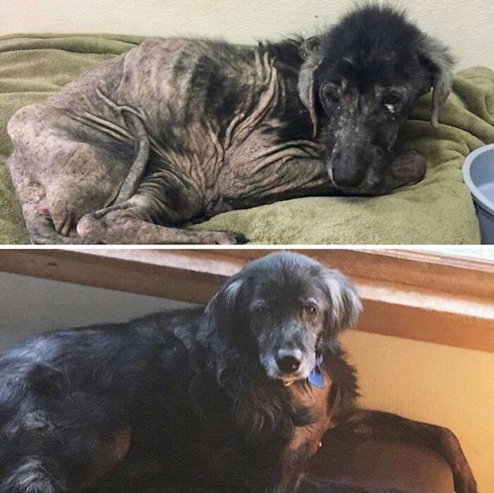 Miley, récupérée dans un hospice par des maitres pour qu’elle puisse avoir une fin de vie correcte. La même Marley, un an et demi plus tard.