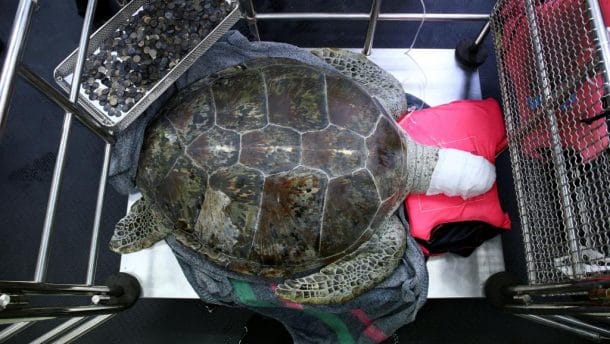 27. La tortue tirelire morte après avoir ingéré 915 pièces de monnaie