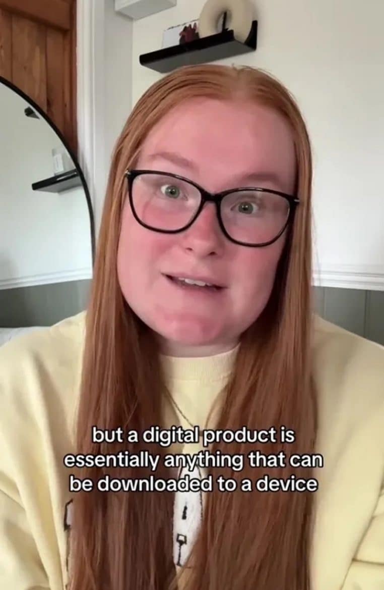 Toujours sur TikTok, la jeune femme déclare : « Quand j’ai commencé, je n’avais aucune idée de ce qu’était un produit numérique, mais un produit numérique est essentiellement tout ce qui peut être téléchargé sur un appareil, donc un livre électronique, un guide, un agenda, un modèle, une invitation, tout ce qui est téléchargé sur un appareil et envoyé à votre e-mail ».