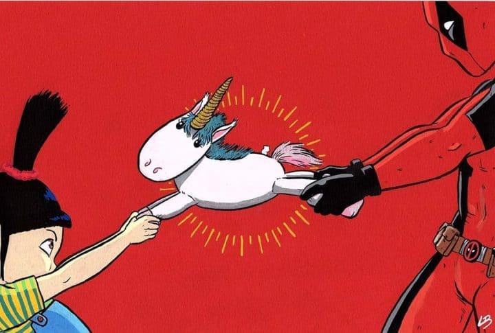 Deadpool tente de chiper la licorne d’Agnès (Moi, Moche et Méchant)