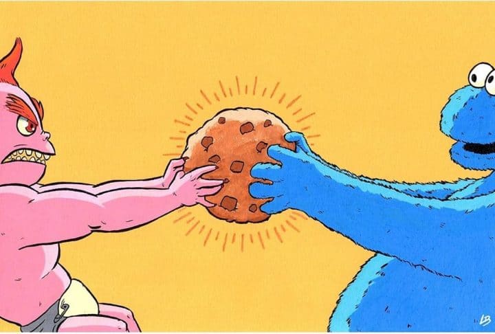 Jack-Jack (Les Indestructibles) et Macaron le glouton (1, rue Sésame) opposent leur force pour un cookie