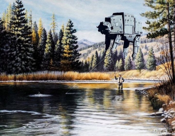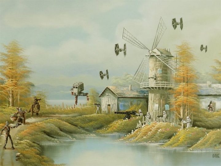 Dave est un artiste pour le moins atypique. Il tient une boutique d’antiquités dans l‘Ohio, aux Etats-Unis. Son petit plaisir, se balader dans les brocantes avec un objectif en tête : trouver des tableaux anciens où il pourra incruster des scènes de Star Wars pour un rendu surprenant. Il vend alors ses créations sur son site internet. Passionné de science-fiction en général, Dave ne se contente pas de peindre que sur Star Wars. Découvrez ses créations originales !